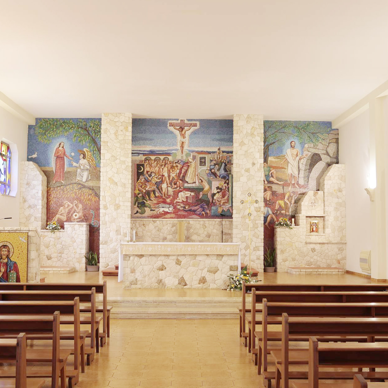 Il cuore spirituale dell’Oasi: un ambiente semplice e raccolto, dedicato alla preghiera personale e alla condivisione liturgica. Un luogo di contemplazione che apre a una dimensione interiore.